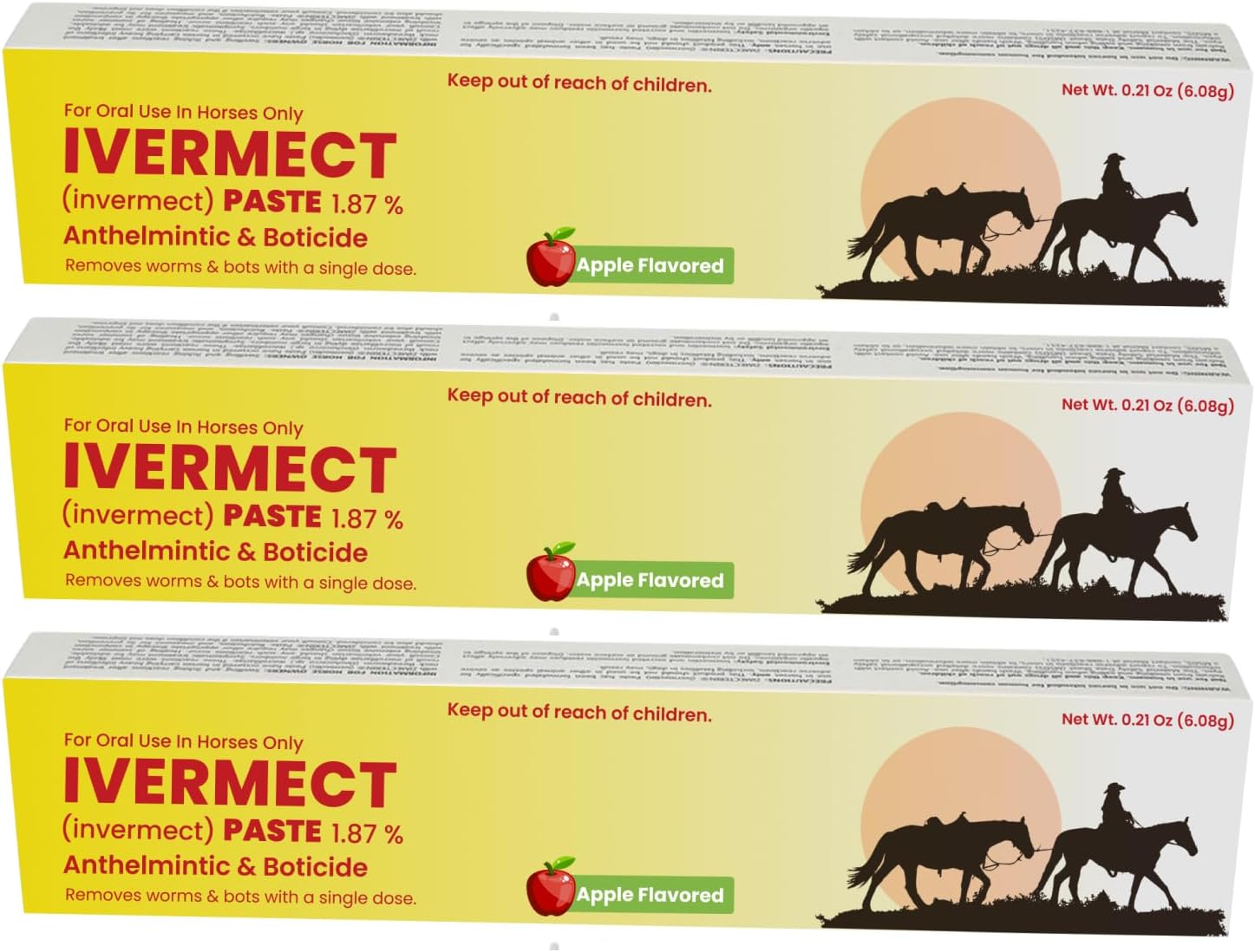 - Ivermectin Paste 1.87% Apple Flavored 6.08g – Horse Dewormer for Parasite Control – Safe for Foals, Broodmares, Breeding Stallions – Removes Worms & Bots - Pack of 3
